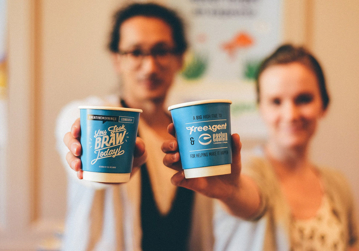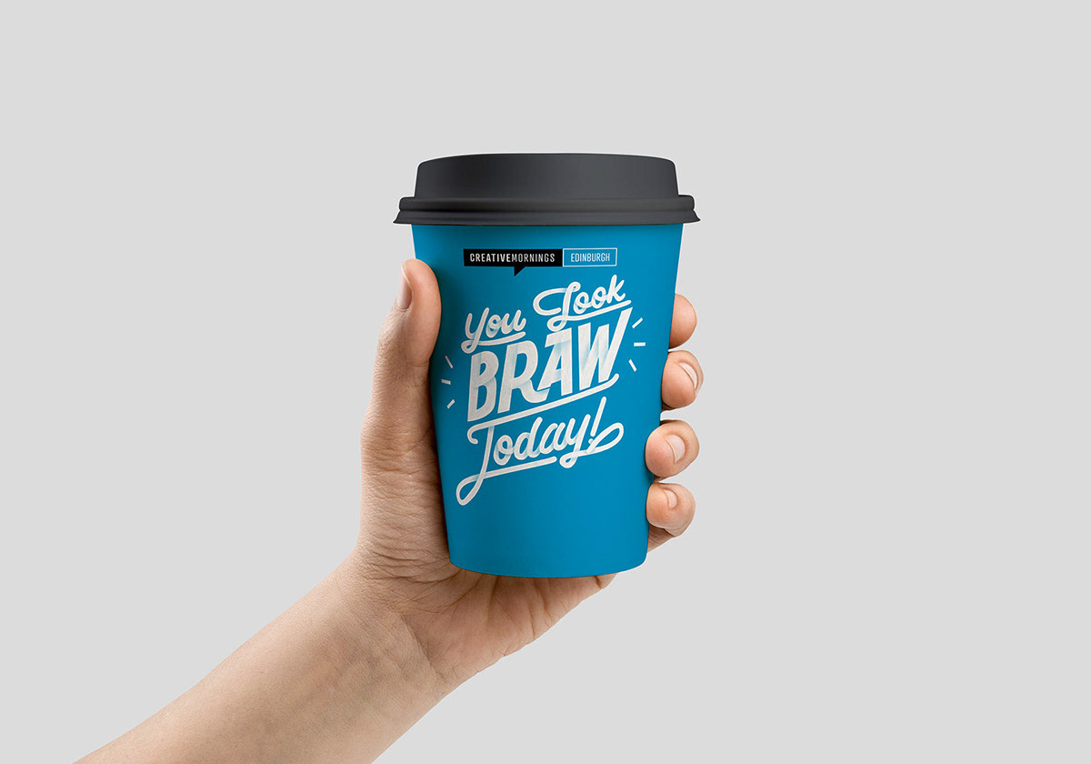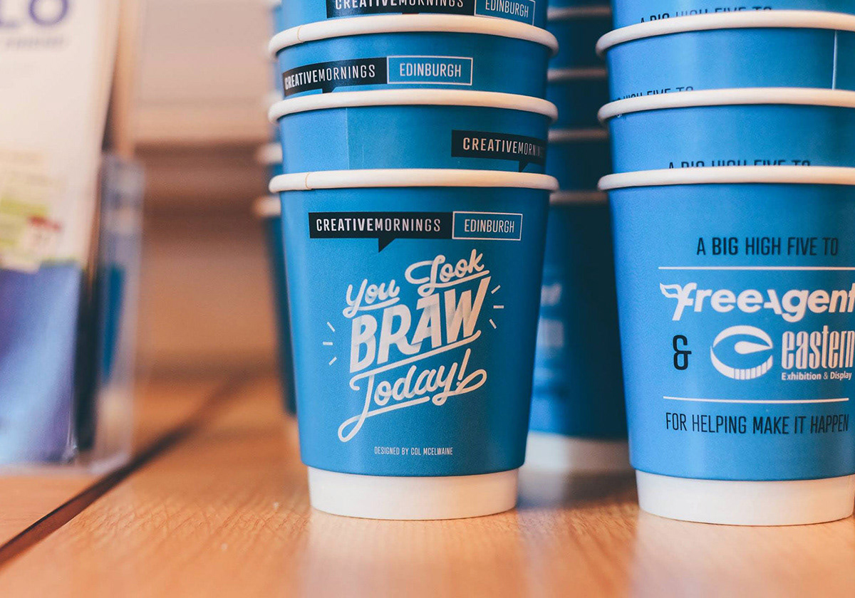 Custom type and cup design for Creative Mornings Edinburgh Chapter